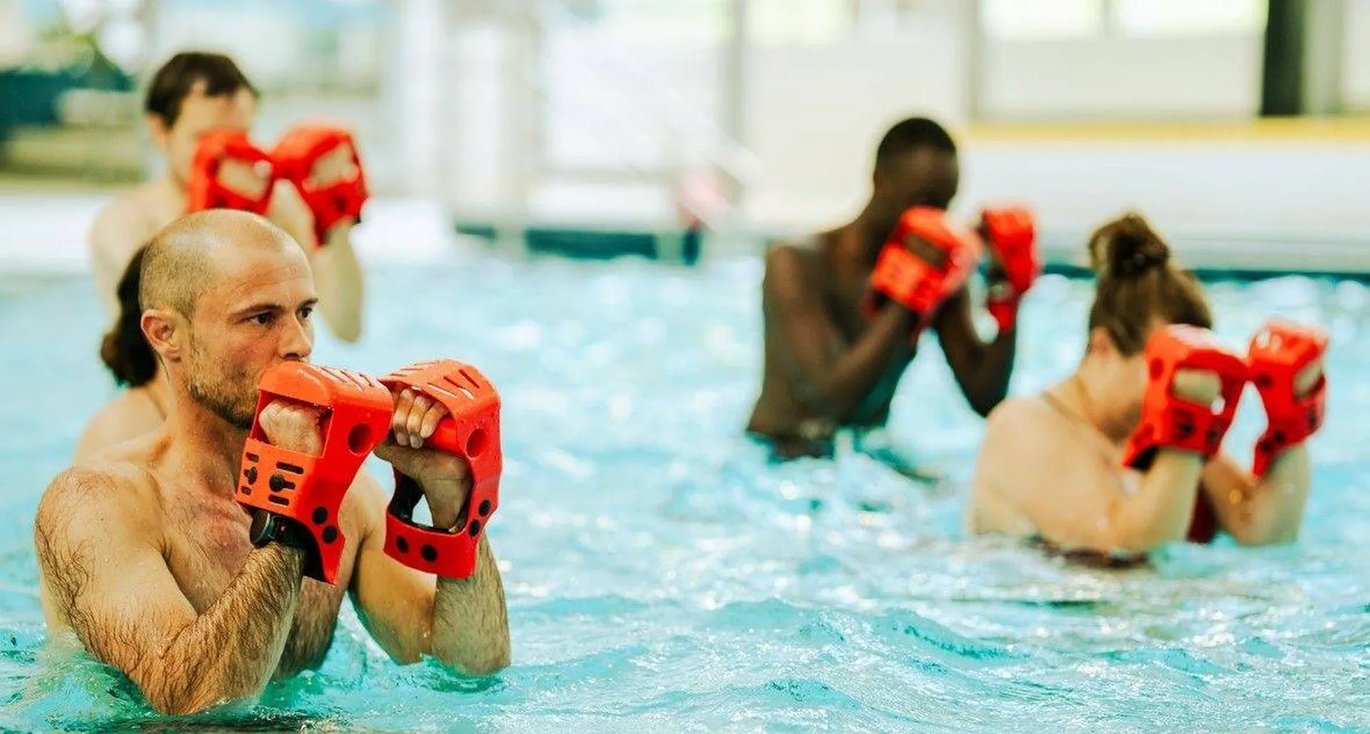 Découvrez l'Aqua Sculpt, c'est un travail musculaire complet dans l'eau. Ce cours renforce le centre du corps, le dos, les épaules et les bras.